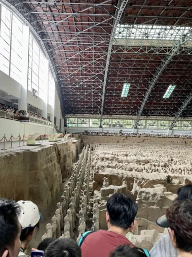 Because there are so many tourists to visit the Terra-cotta Warriors, you have to make an appointment at least one day in advance to get a ticket, which makes holidays even more difficult! I am not a holiday visit is still very crowded, the terracotta Army pit around the crowded, can not see the pit. In the middle of summer, there is no air conditioning in the No. 1 pit, so it is unusually hot and sweaty, and some tourists suffer from heat stroke here, and the humanistic care of tourists in the scenic spot is not enough.